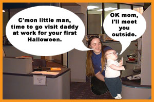 the office with his mommy to go visit his daddy at work to celebrate Mikey's